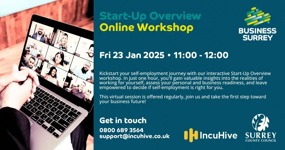 This virtual session is offered regularly by the expert team at IncuHive. The course is fully-funded by UK Government as part of Growth Hub funding to Surrey County Council.